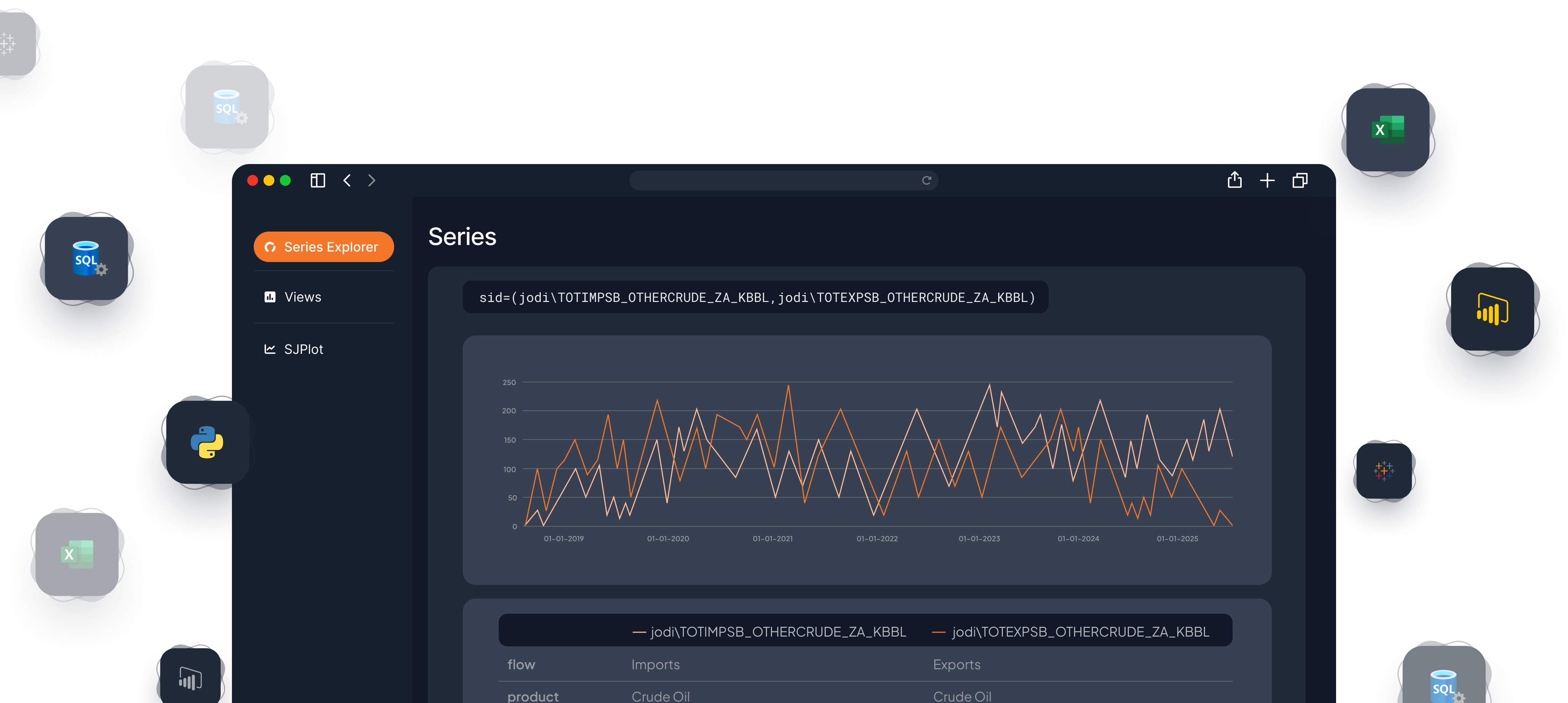 Shooju delivers data in any form and into the tools you already use. From Excel and BI dashboards to APIs and code, data arrives ready for analysis — no extra steps.